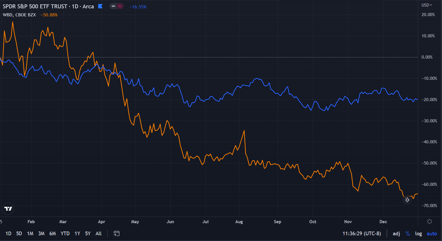 ($WBD vs $SPY in 2022)