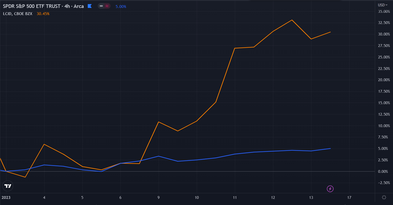($LCID vs $SPY in 2023)